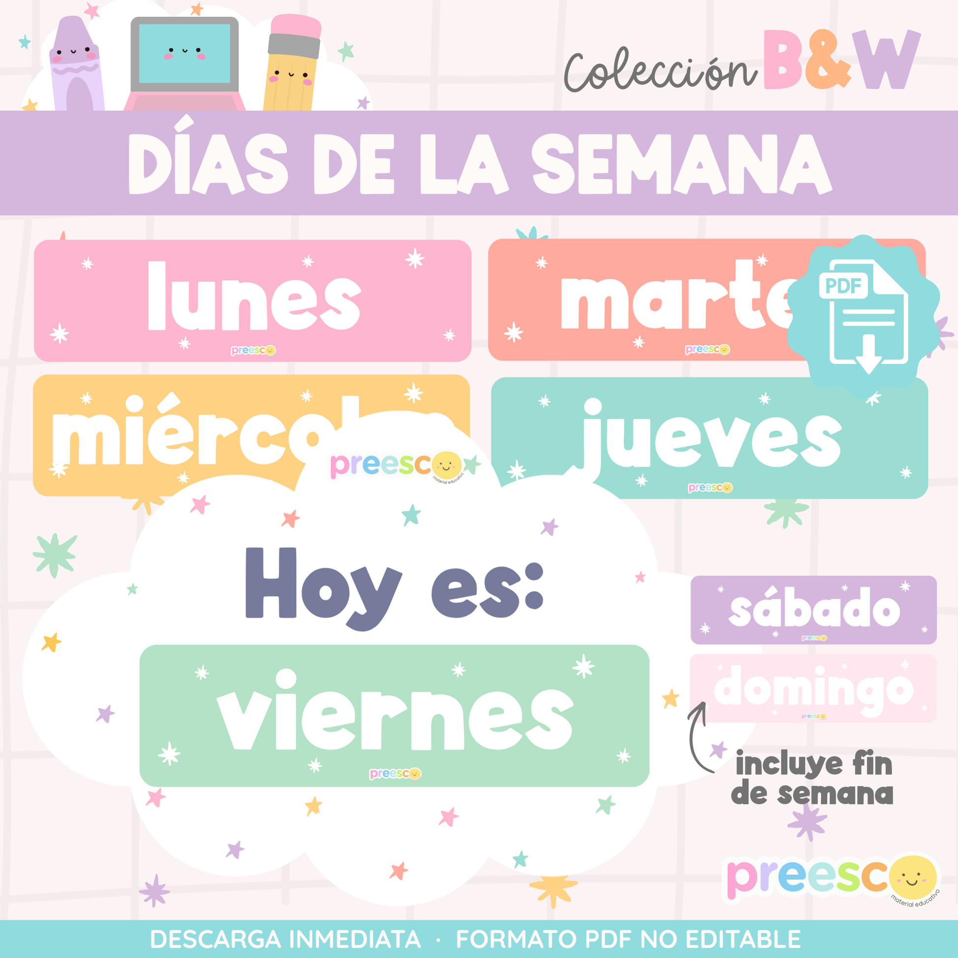 Pósters de los días de la semana en formato PDF (NO EDITABLE)